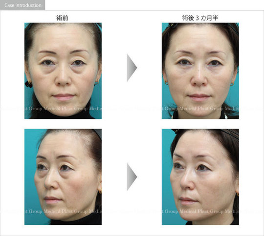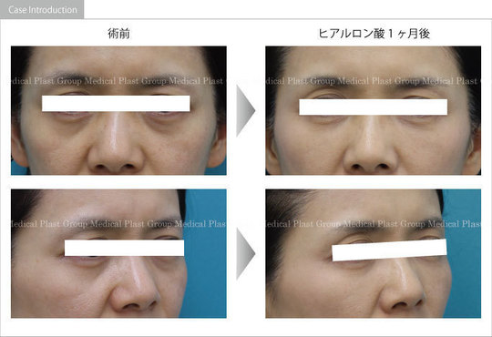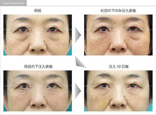 頬の下垂感を改善するとともに、くぼんだんクマが改善するように注入しました。