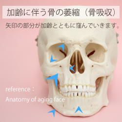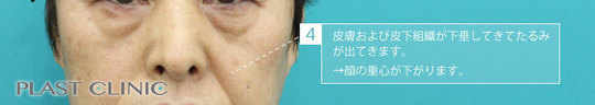 ③の現象が起きる結果、緩んでしまった皮膚および皮下組織が下垂して法令線の影が強調されることになります。