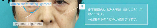 一つは目袋の形を作っている靭帯(orbicularis retaining ligament)です。