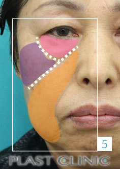 加齢とともにでてくるこのくぼみは主に脂肪の萎縮およびゆるみと靭帯の存在によります。
