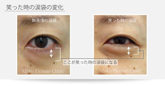下の図を見ていただくとわかりますが、無表情のときの涙袋と笑った時の涙袋は大きさが違います。