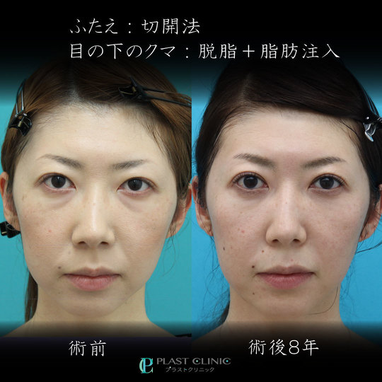脂肪の突出が主な原因であれば脱脂術が適しているかもしれませんし、くぼみが目立つ場合は脂肪注入の併用や裏ハムラ法(≒経結膜的眼窩脂肪組み換え術)がより効果的なこともあります。