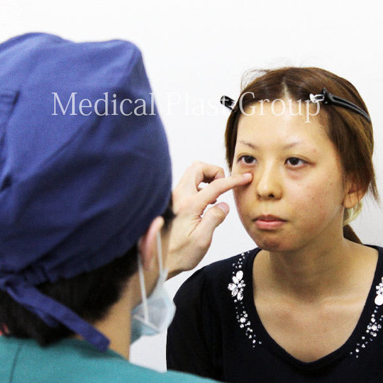 ご本人様とご相談させていただき、経結膜脱脂法+マイクロコンデンスリッチファット注入を施行させていただきました。