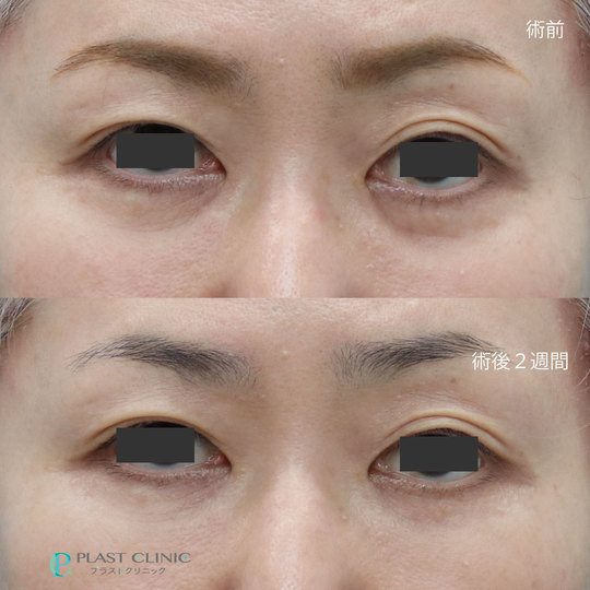 治療後は予定通り眼輪筋のゆるみに伴う下のくぼみが改善しておりました。